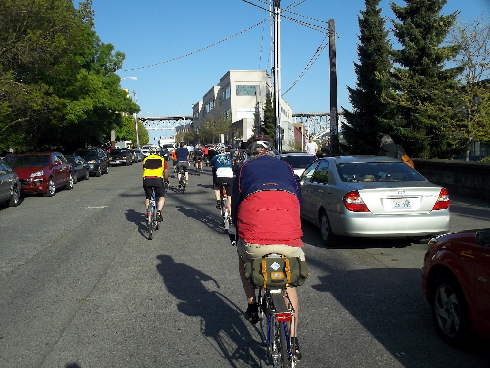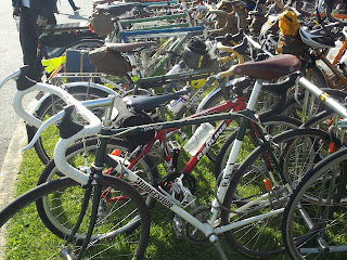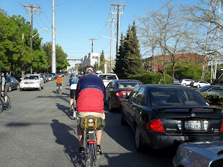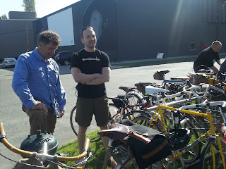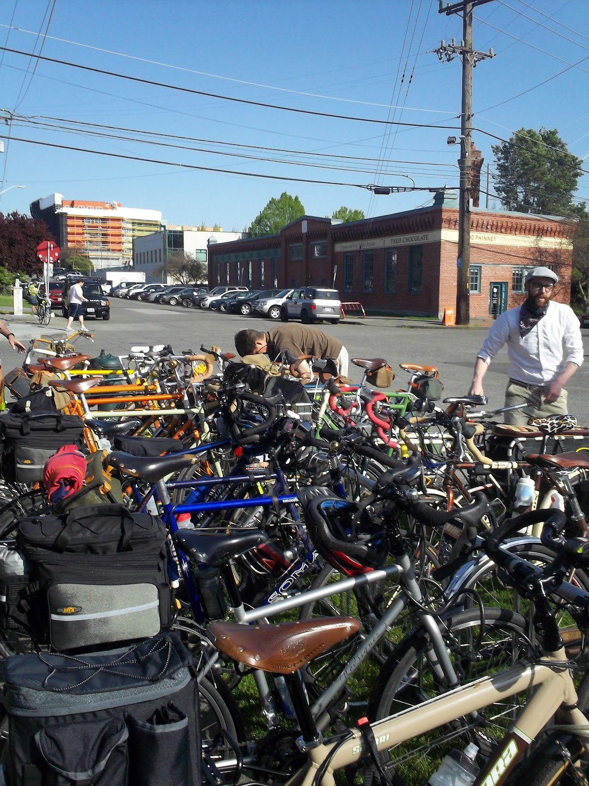 Holy cow! I never see a sight like this on the east coast. You'd think you'd entered a bizarro world where carbon fiber and skinny tires have been outlawed. -Perry