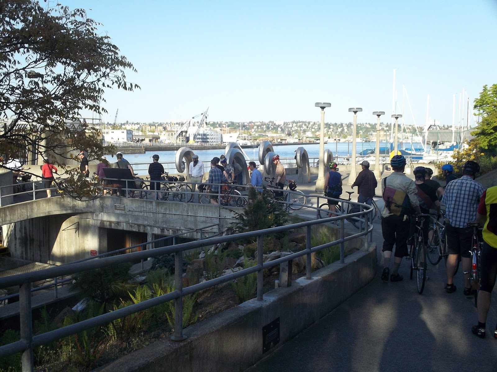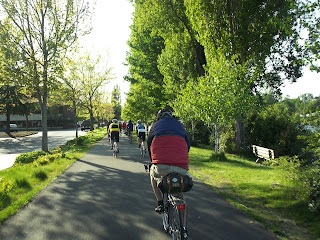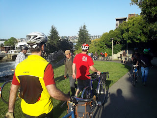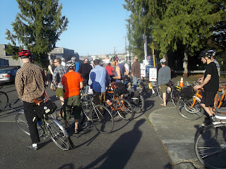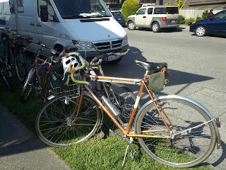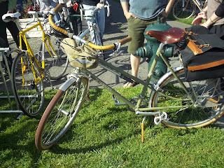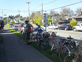 On Friday, May 12th 2012 Grant Petersen visited Seattle to talk about his book Just Ride and to just ride with a few folks. An overflow crowd more than filled Free Range Cycles and Seattle did its best to dispel the "it rains all the time" myth. I can't tell you what Grant had to say because I figured it'd be best to let the less claustrophobic and more hard core fans pack into the shop for the talk, but we all had a nice ride afterwards and I took a few pictures of some really nice bikes.
